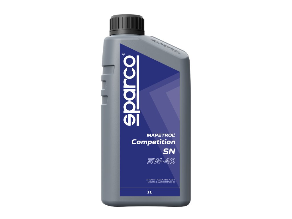 Mapetrol Sparco Competition SN 5W-40: Plně syntetický motorový olej s pečlivě vybranými vysoce kvalitními aditivy a základovými oleji. Zajišťuje ochranu motoru, vynikající viskozitu při nízkých teplotách. Vhodný pro benzínové a dieselové motory osobních automobilů s turbodmychadlem a přímým vstřikováním paliva. Není určen pro dieselové motory vybavené filtrem pevných částic (DPF).