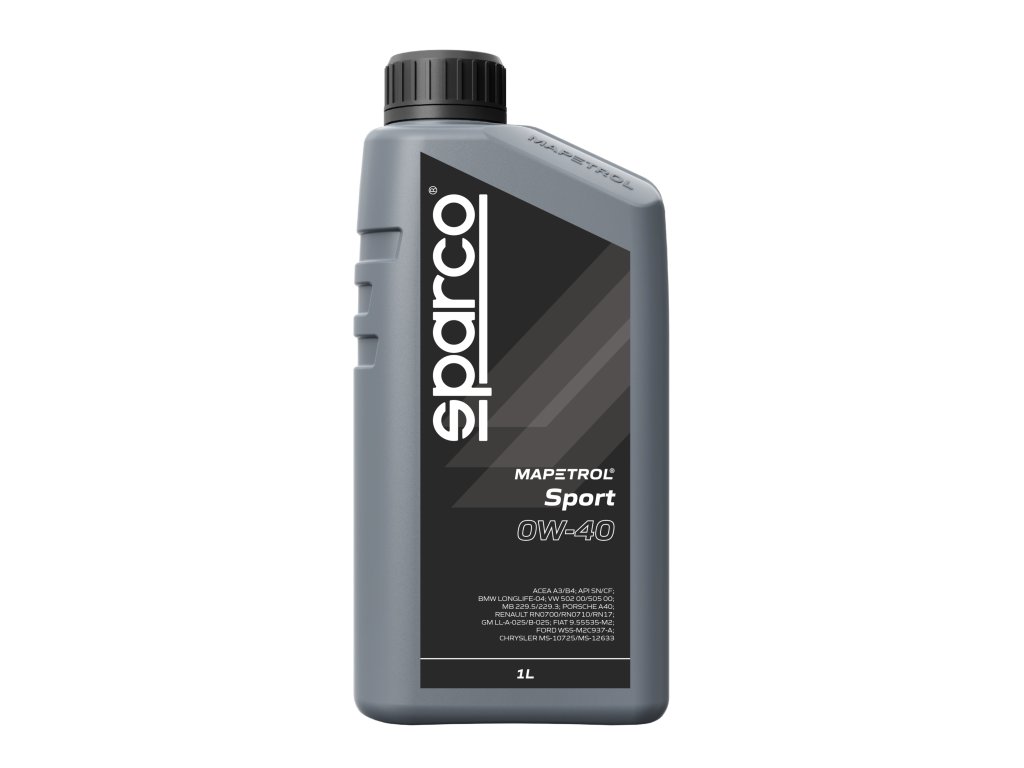 Mapetrol Sparco Sport 0W-40: Plně syntetický motorový olej pro supersporty, sportovní auta a vysoce výkonné motory. Zajišťuje vynikající čistotu, odolnost, viskozitní stabilitu, ochranu proti opotřebení a odolnost při nízkých teplotách. Navíc si zachovává vysokou viskozitu i při vysokých teplotách motoru.